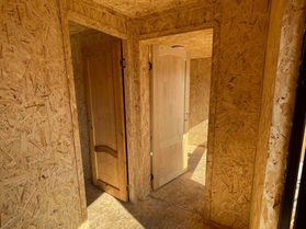 🔨Внутренняя отделка дома выполнена с использованием листов ОСБ толщиной 9 мм, что обеспечивает надежность и долговечность конструкции. Крыша двускатная, покрытая профнастилом серого графита толщиной 0,4 мм, защищает дом от внешних воздействий и обеспечивает отличную теплоизоляцию.